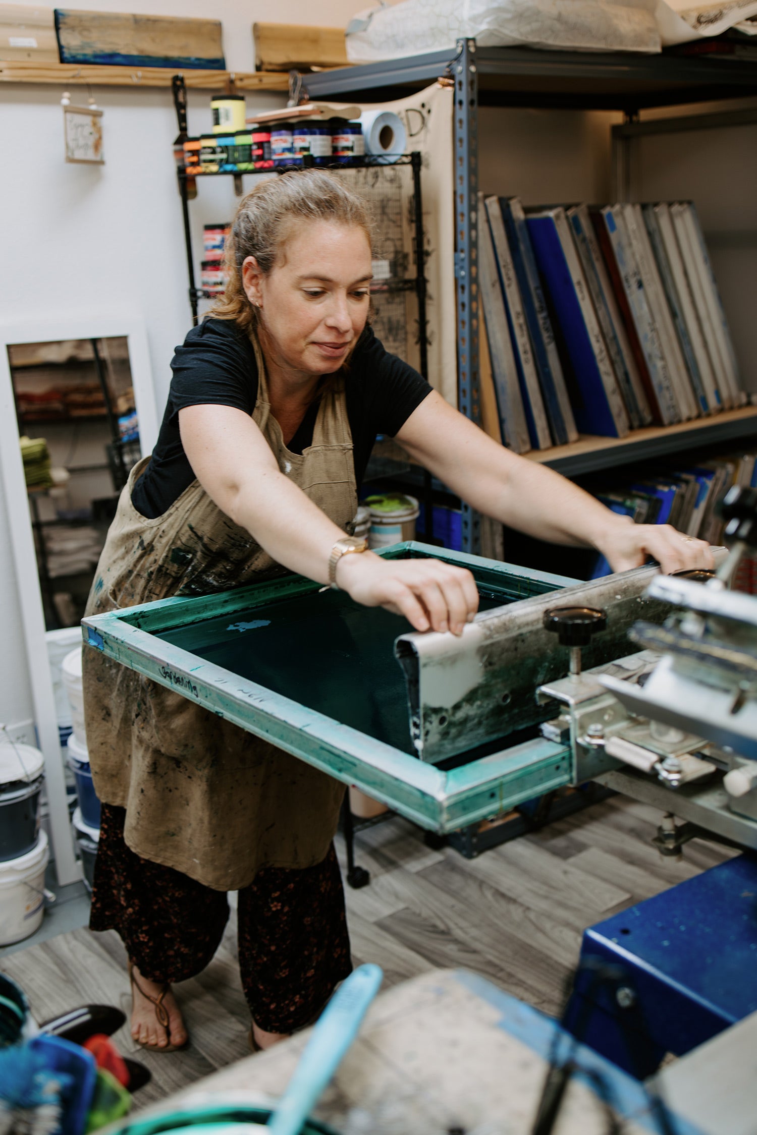 We absolutely love creating functional art! Our collection features a variety of items, including dish towels, napkins, aprons, T-shirts, tank tops, bags, and much more.