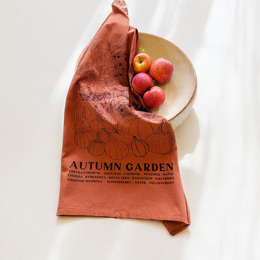 AUTUMN GARDEN Hand Printed Artisan Tea Towel