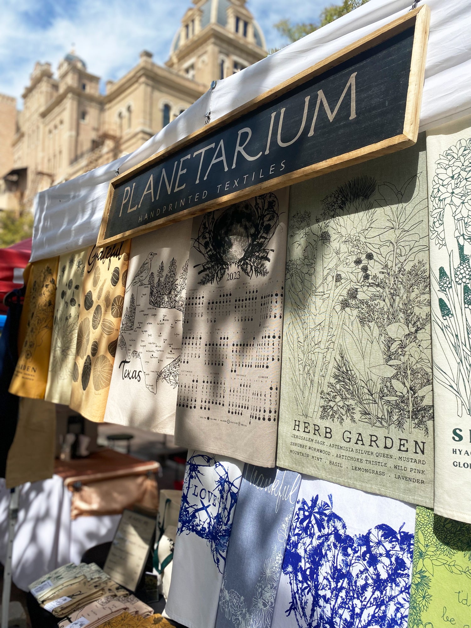 We absolutely love creating functional art! Our collection features a variety of items, including dish towels, napkins, aprons, T-shirts, tank tops, bags, and much more.