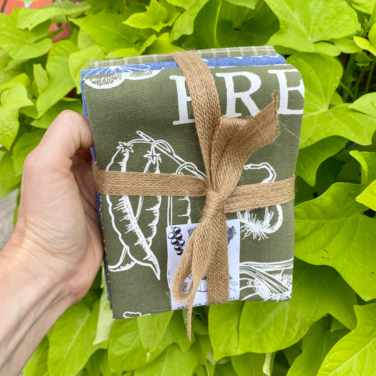 Green Gardening Botanical Handprinted Artisan Tea Towel Set