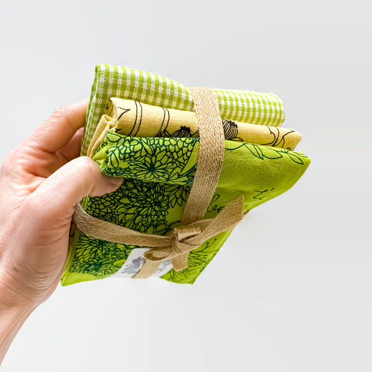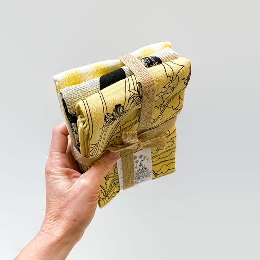 Yellow Gardening Botanical Handprinted Artisan Tea Towel Set