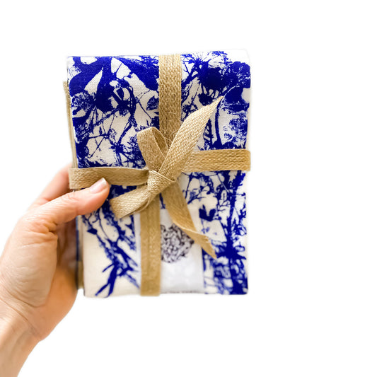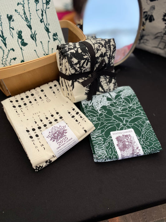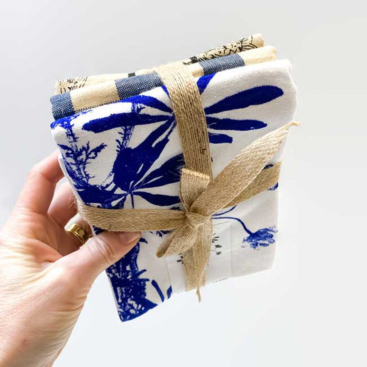 Navy Botanical Handprinted Artisan Tea Towel Set